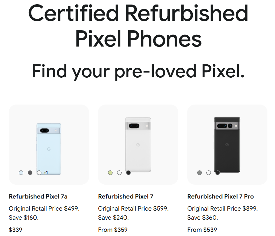 Für Schnäppchenjäger war das Certified Refurbished Pixel Phone-Programm ein echter Geheimtipp. Google bot darin ältere Modelle mit bis zu 40 % Rabatt gegenüber dem ursprünglichen Verkaufspreis an. Jedes Gerät wurde gründlich geprüft – Akku, Display und Gehäuse – und bei Bedarf mit Originalteilen repariert. Außerdem kamen die Geräte mit der neuesten Android-Version, einem passenden Ladegerät und einem Jahr Garantie. So war das Pixel 6 für 339 US-Dollar und das Pixel 6 Pro für 539 US-Dollar erhältlich – ein echter Deal für alle, die in die Pixel-Welt einsteigen wollten.